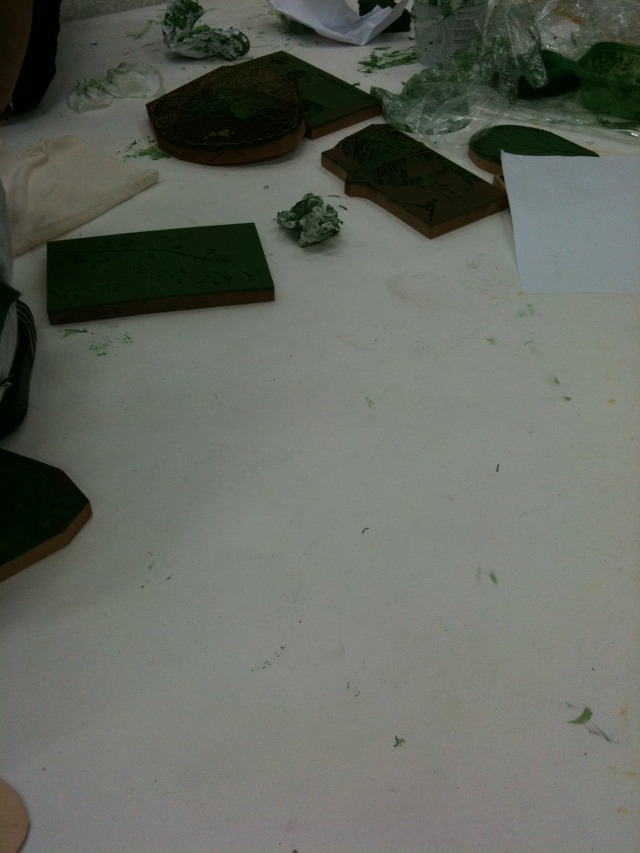 방법은 목판을 친환경 안료를 이용하여 찍고 그 주변을 패브릭 마카, 파스텔을 이용해 작업한 것입니다.